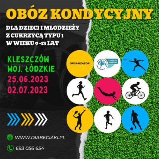 Pliki do pobrania: Karta kwalifikacyjna_kliknij tutajRegulamin obozu_kliknij tutajNiezbędnik Kleszczów_kliknij tutaj Szanowni Państwo, serdecznie zapraszamy na Obóz Kondycyjny dla dzieci i młodzieży z cukrzycą typu 1 w wieku 9-13 lat, który odbędzie się w Kleszczowie...