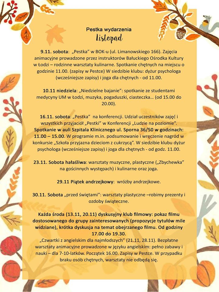 Listopadowe wydarzenia w Pestce przez Fundacja Diabeciaki · Opublikowano 13 listopada 2019 · Zaktualizowano 18 września 2021