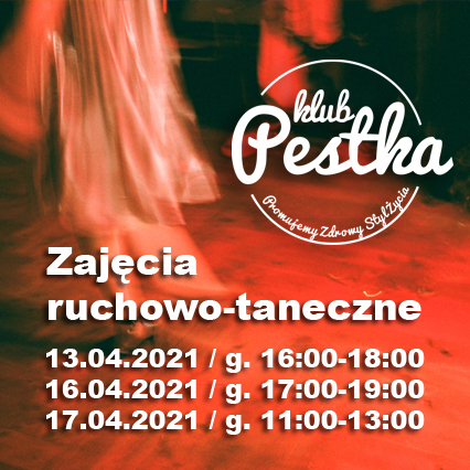 Zajęcia ruchowo-taneczne w PESTCE – w tym tygodniu przez Fundacja Diabeciaki · Opublikowano 11 kwietnia 2021 · Zaktualizowano 18 września 2021 13.04.2021, g. 16:00-18:0016.04.2021, g. 17:00-19:0017.04.2021, g. 11:00-13:00