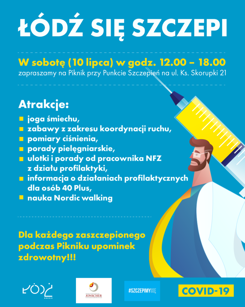 W sobotę (10 lipca) w godz. 12.00 – 18.00 zapraszamy na Piknik przy Punkcie Szczepień na ul. Ks. Skorupki 21.