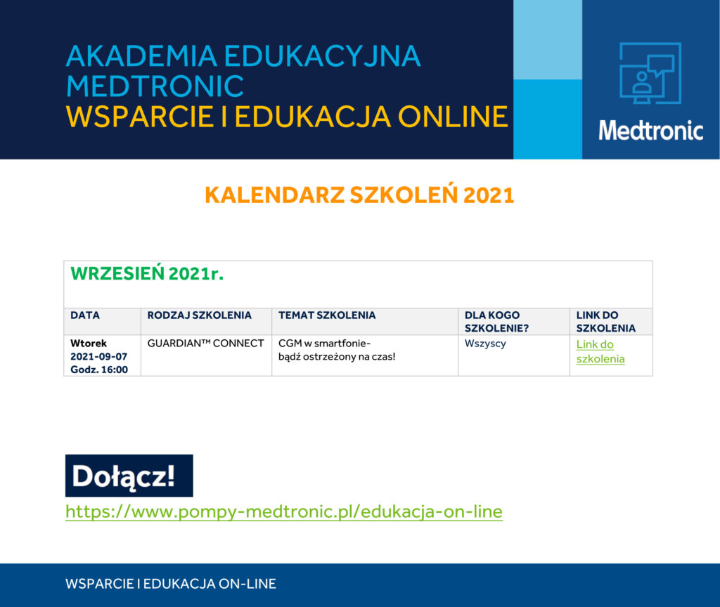 Naszym celem jest zapewnienie kontynuacji spotkań edukacyjnych poprzez przekazywanie wiedzy oraz ćwiczenie umiejętności praktycznych z zakresu terapii cukrzycy przy stosowaniu zintegrowanych systemów Medtronic: MiniMed™ 640G, MiniMed™ VEO™ oraz systemu ciągłego monitorowania glikemii Guardian™ Connect a także oprogramowania on-line wspomagającego leczenie – CareLink™ Personal.