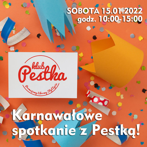 Karnawałowe spotkanie z Pestką! przez Fundacja Diabeciaki · Opublikowano 11 stycznia 2022 · Zaktualizowano 2 marca 2022 SOBOTA 15.01.2022, godz. 10:00-15:00