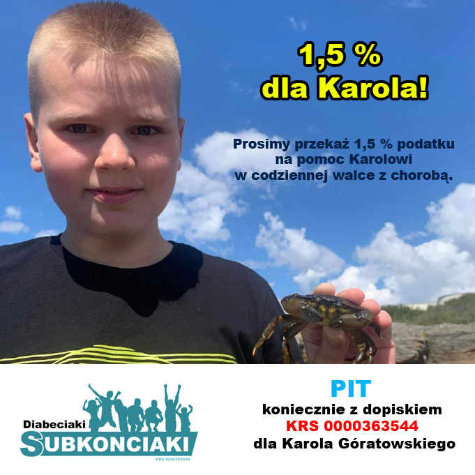Karol to radosny 12 latek. Uwielbia jazdę na rowerze, wędrówki po lesie i kocha zwierzęta te małe i te duże. Ta radość i wrodzona pogoda ducha, która zawsze mu towarzyszyła została zachwiana w październiku 2022 r., gdy zdiagnozowano u niego chorobę autoimmunologiczną, jaką jest Cukrzyca typu I. Choroba ta jest chorobą nieuleczalną, wymagającą insulinoterapii i stałej kontroli glikemii.