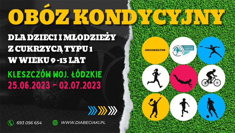 serdecznie zapraszamy na Obóz Kondycyjny dla dzieci i młodzieży z cukrzycą typu 1 w wieku 9-13 lat, który odbędzie się w Kleszczowie woj. łódzkie, w dniach od 25.06.2023 do 02.07.2023.