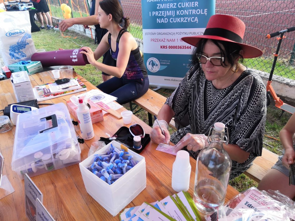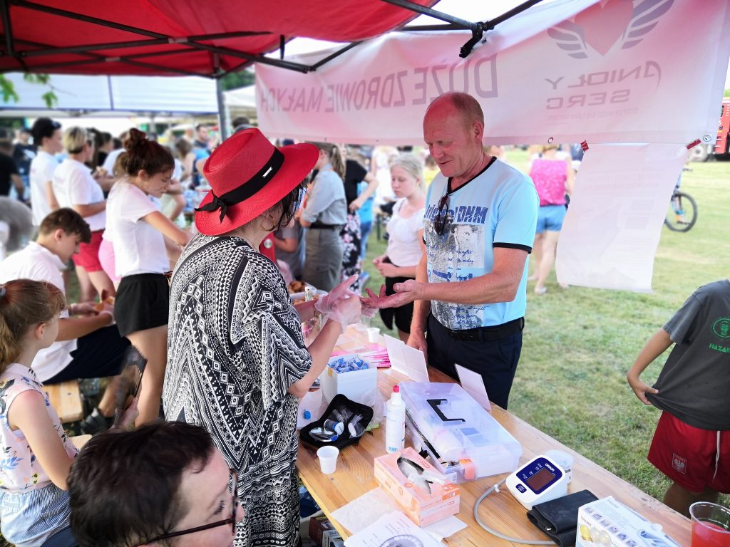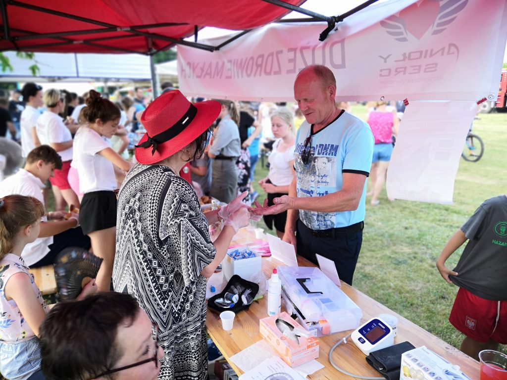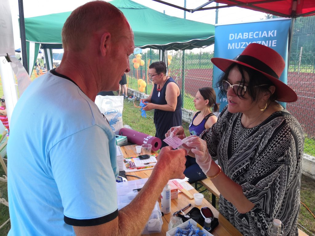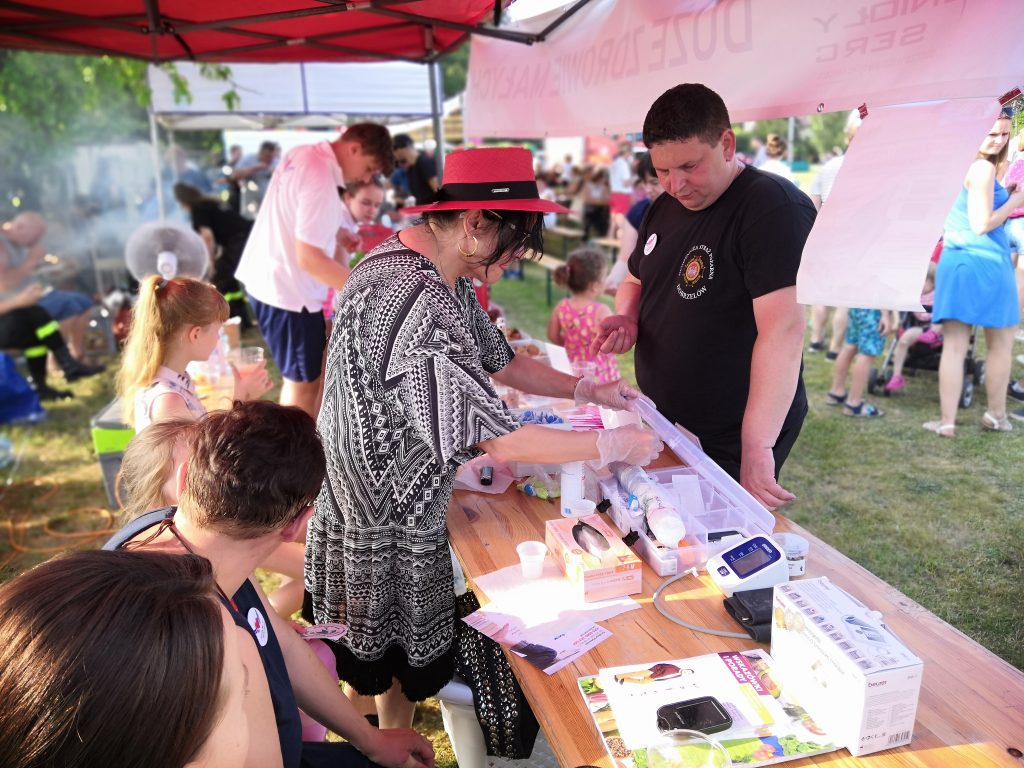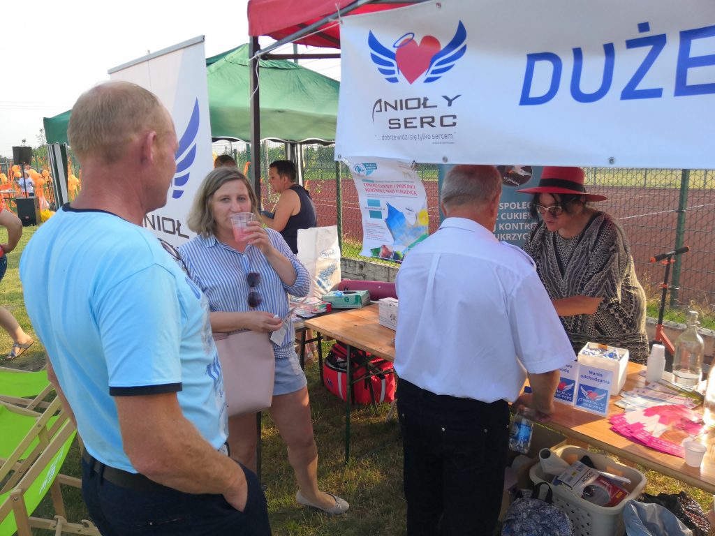 W upalne piątkowe popołudnie byliśmy obecni na pikniku rodzinnym w Dobrzelowie. Tuż obok Stowarzyszenia “Anioły Serc” mieliśmy swoje stoisko. Zwyczajowo mierzyliśmy poziom cukru, wspieraliśmy słowem i schłodzoną wodą spragnionych. Co ważne, to w tego rodzaju wydarzeniach nasz udział daje możliwość wstępnego sprawdzenia swojego stanu zdrowia pod kątem cukrzycy, a bywa, że poznania w ogóle czym jest ta choroba i jak się objawia. Na samym pikniku można było zjeść kiełbaskę z grilla, młodsze dzieci mogły pozjeżdżać z dużych dmuchańców, czy przejechać się pod nadzorem quadem po specjalnym torze. Były też występy grup tanecznych i wokalnych.