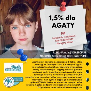 Wspomóż mnie w życiu z cukrzycą Przekaż 1,5 % podatku KRS 0000363544 koniecznie z dopiskiem Oliwia Szymczak Oliwia ma lat 13. W styczniu 2024 roku została u niej zdiagnozowana cukrzyca typu 1- nieuleczalna choroba...