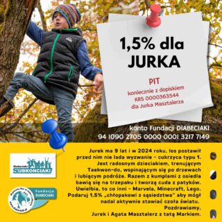 Jurek ma 9 lat i w 2024 roku, los postawił przed nim nie lada wyzwanie – cukrzyca typu 1. Jest radosnym dzieciakiem, trenującym Taekwon-do, wspinającym się po drzewach i lubiącym podróże. Razem z kumplami...