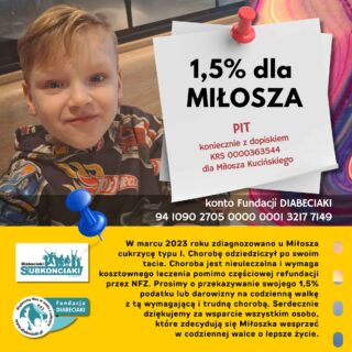 Miłosz Kuciński 4 lata, w marcu 2023 roku zdiagnozowano u niego cukrzycę typu I. Chorobę odziedziczył po swoim tacie. Choroba jest nieuleczalna i wymaga kosztownego leczenia pomimo częściowej refundacji przez NFZ. Miłoszek jest bardzo...