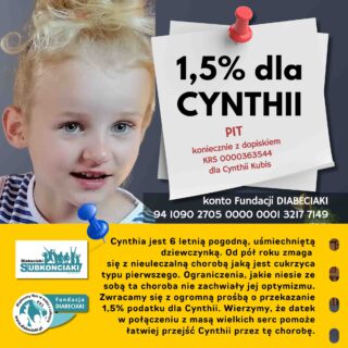 Wspomóż mnie w życiu z cukrzycą Przekaż 1,5 % podatku KRS 0000363544 koniecznie z dopiskiem Oliwia Szymczak Oliwia ma lat 13. W styczniu 2024 roku została u niej zdiagnozowana cukrzyca typu 1- nieuleczalna choroba...